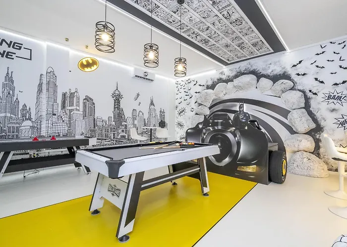 Com piscina interior para uma experiência relaxante, a pousada Disney Private Pool Game Room Themed Bedrooms. Book Now Pg25 Orlando está localizada a aproximadamente 20 minutos a pé de SeaWorld's Discovery Cove. Esta propriedade dispõe de oportunidades para ciclismo na área, a uma distância de 4.8 km da SEA LIFE Orlando Aquarium.